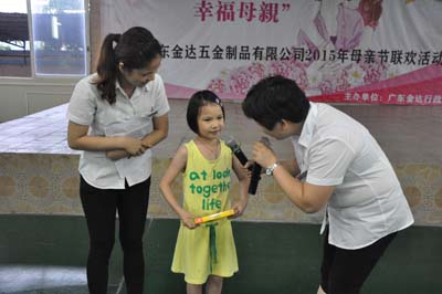 “媽媽,多謝你,我知道你平時工作非常辛苦,但回到家仍然細心照顧我,陪伴著我,祝你母親節快樂!”一段真摯由衷的感言,感動了在場所有職工媽媽,溫馨淚水蕩漾在眼中。2015年5月9日,廣東金達為表達對在職母親的愛與感激之情,舉辦主題為“幸福金達、幸福母親”聯歡晚會,邀請職工的子女一同參與,活動安排多個親子的互動環節,希望值母親節之際,拉近母親與子女間的距離,透過活動,把愛與思念說出來。