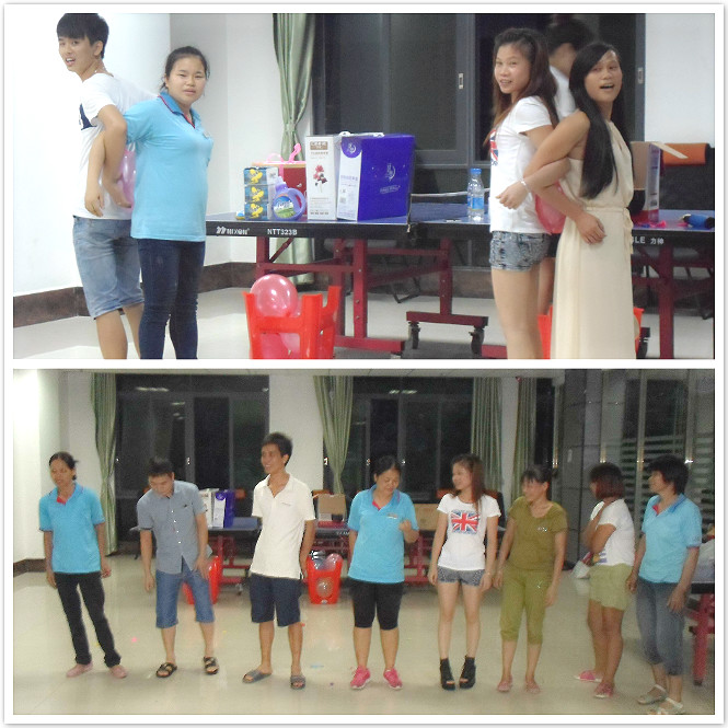 在行政工會(huì)的精心準(zhǔn)備下,把會(huì)議布置得溫馨而浪漫;首先由工會(huì)主席致祝福詞拉開了活動(dòng)的序幕; 按照活動(dòng)的流程,接著進(jìn)行“背對(duì)背擠氣球”的游戲,現(xiàn)場(chǎng)氣球爆聲如鞭炮,讓大家都熱情歡呼、情緒高昂;使整個(gè)活動(dòng)的變得刺激又興奮,同時(shí)通過(guò)轉(zhuǎn)瓶子的方式抽選出十人上臺(tái)進(jìn)行“三人抱成團(tuán)”的游戲,逗得臺(tái)下的壽星們都笑不攏嘴,熱情高漲。