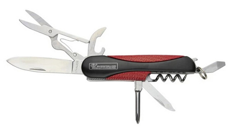 功能:1、開罐器 2、剪刀 3、大刀 4、十字螺絲刀 5、指甲銼(指甲除垢器) 6、螺旋開瓶器7、開瓶器(一字螺絲刀) 8、匙圈